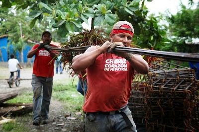 Amarelis Guzmán travaille à temps plein pour la commune. Elle est là où on a besoin d’elle. Elle fait de la politique : “Nous ne voulons pas que d’autres viennent la faire pour nous, nous voulons la faire nous-mêmes”. Elle ne croit pas aux impositions : “Nous ne voulons pas que papa-gouvernement vienne nous construire les maisons, nous pouvons les faire nous-mêmes”. Il y a un déficit de 200 logements. Solution : à El Copey on organise une journée d’auto-construction avec des matériels reçus en donation, on travaille dur, sous la pluie, avec humour. Amarelis conclut : “Nous ne voulons pas du capitalisme et de ses quatre murs, nous voulons construire des logements décents pour “bien vivre”, comme Chavez nous l’a enseigné”.