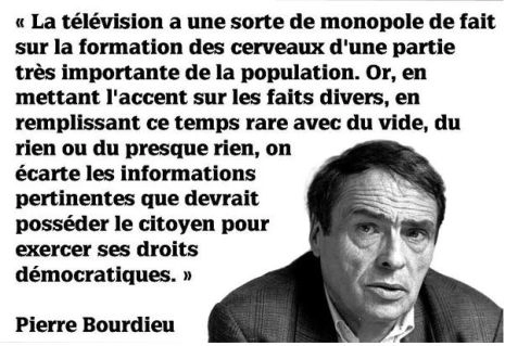1- Sont invités sur les plateaux les « bons clients » pour l’Audimat, les beaux parleurs et quelques-uns des compères « qui se connaissent, qui déjeunent ensemble, qui dînent ensemble », dixit le sociologue Pierre Bourdieu qui insiste : « En fait, l’univers des invités permanents est un monde clos d’inter-connaissance, qui fonctionne dans une logique d’auto-renforcement permanent ».