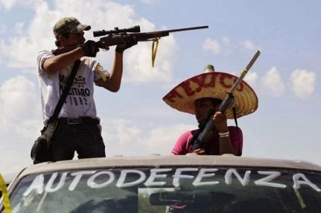 Les groupes d’autodéfense ont surgi au départ, au Michoacán, dans des communes urbanisées ou en tout cas pas ou peu indigènes, comme Coalcomán ou Tepalcatepec, lieu d’où surgit la proposition initiale, inspirée par l’exemple de la patrouille communautaire de la municipalité autonome de Cherán et dans laquelle toute la population civile est active ou est impliquée : c’est que toute la population (petits commerçants, paysans, taxis, épiciers, menuisiers, restaurateurs, artisans, éleveurs, grands agriculteurs, mineurs et entrepreneurs) subissait des vols, des extorsions, des enlèvements, des viols, des assassinats et des obligations de payer le racket de “sécurité”.