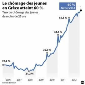 UN « GEUNOCIDE » [13] : L’éruption volcanique du chômage des jeunes est un crime contre la société grecque car la jeunesse est l’avenir de la société. La Troïka libérale le sait fort bien, mais en permanence, et dans tous les pays qui l’acceptent, le capitalisme utilise la jeunesse pour parvenir à ses fins, pour réduire ce qu’ils appellent les rigidités (conventions collectives) et le « coût du travail » (ex « emplois jeunes », C.P.E en France), pour mieux masquer les coûts du capital, coûts que nous visualiserons, plus tard.