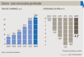 OBJECTIF LOUPE : L’objectif du plan de la Troïka était de faire repartir la croissance en réduisant les fonctionnaires (-30 %) leurs salaires, les pensions de retraite, en privatisant l’économie, censée permettre à des « investisseurs » de se « substituer » à l’Etat. Les résultats sont là, bruts de vérité. Au lieu de connaitre la croissance et l’emploi, c’est l’inverse qui s’est produit car les experts du « marché libre et non faussé » n’ont comme expertise, que l’application « bête et méchante » des équations du marché qui transforme l’être humain en « consommateur » cherchant à « optimiser » ses choix selon une logique « rationnelle ». On voit où ces équations économétriques d’optimisation débouchent… un véritable cataclysme social sans précédent : « Les mesures drastiques d’austérité imposées en Grèce pour assainir les finances publiques du pays se sont accompagnées d’une explosion des suicides, des meurtres et d’une détérioration de la santé publique, selon une étude américano-grecque. » [11] . L’objectif garanti par les experts de la Troïka, n’est pas simplement loupé, mais a donné des résultats inverses à ceux qui étaient « vendus » [12].