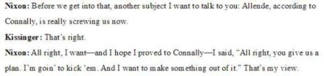 Maurice Lemoine voit dans les évènements récents la copie conforme de ce qui s’est passé en 1972 / 1973 au Chili, où la crise fut délibérément organisée afin de provoquer le Coup d’État politique d’Augusto Pinochet. Avec l’aval des États-Unis et le soutien de la CIA et du MI6, la prise du pouvoir de Pinochet déboucha sur l’instauration du premier laboratoire du néolibéralisme.