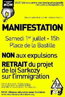 19 juin 2006 2006-07-01 Non aux expulsion, retrait du projet de loi Sarkozy. Manifestation samedi 1er juillet 2006 15h Réseau Éducation Sans Frontières www.educationsansfrontieres.org Proposition de loi visant à encadrer la dispersion et les débordements lors des manifestations et attroupements, par M. Eric Raoult. (Commentaires désactivés)