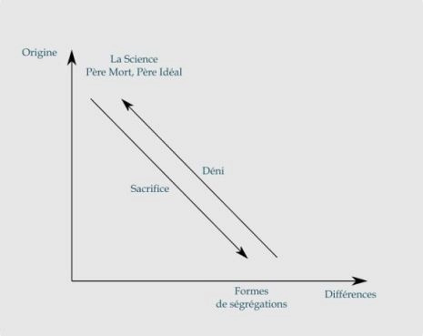 Je me contenterai ici de me servir d’un propos de Lacan à propos du nazisme dans son texte sur la formation des psychanalystes, le 9 Octobre 1967. L’absence de mise en question de l’Œdipe, du Père Idéal, du Père Mort , dans le milieu psychanalytique, indique Lacan, laisse dans l’ombre un phénomène qu’il nomme de façon très précise : « L’avènement corrélatif à l’universalisation du sujet procédant de la science, du phénomène fondamental dont le camp de concentration a montré l’éruption. Qui ne voit que le nazisme n’a eu ici que la valeur d’un réactif précurseur ? ». Puis Lacan associe sur la montée d’un monde organisé sur toutes les formes de ségrégation. Le nazisme aurait ainsi été le réactif précurseur d’un monde organisé sur toutes les formes de ségrégation et l’idéologie du Père Mort conjugué au discours de La science renvoie à ce que j’ai évoqué sur l’alliance des meurtriers et son impact dans le transfert social. L’idéologie du Père Mort pousse à la passion de l’ignorance. Cette conjonction nous empêche de voir les formes de ségrégation meurtrière : déni, louche refus [10].