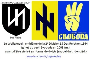 Il aura donc fallu attendre les premières discordes entre le gouvernement Porochenko et les unités néo-nazies du Pravy Sektor, pour qu’ Ornella Guyet publie un article sur l’extrême droite en Ukraine. Jusqu’alors pas le moindre dossier complet sur les néo-nazis ukrainiens, sur Svoboda ce « parti d’ex », à l’exception de dix lignes noyées dans quelques dossiers consacrés à l’Ukraine. Des billets qui minimisent autant que possible l’influence de l’extrême droite pro-Kiev. D’ailleurs Ornella Guyet y parle davantage de Hugo Chavez et de l’URSS que de l’antisémitisme en Ukraine. Si vous supportez sans souffrir la pensée par amalgame, alors allez voir ici.