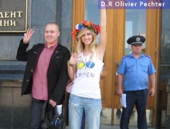 Quant à Inna Shevchenko, égérie du groupe des FEMENS, et même devenue modèle de notre Marianne, protégée de Caroline Fourest, nous la retrouvons en compagnie du néo-nazi Edouard Iholnikov effectuant le signe de ralliement de Svoboda. Le documentaliste Olivier Pechter nous propose une analyse sur la véracité de la jolie fable des FEMENS. Pechter revient point par point sur la véritable saga des FEMENS en ciblant les 3 époques décisives qui ont marqué leur “mouvement” : “Nationaux-bolcheviks (nazbols), les premiers alliés ” – “Immigration, peine de mort, alliés néofascistes” – “Islamophobie et réseaux néoconservateurs, les alliés d’aujourd’hui.” Ornella Guyet ne voit pourtant aucun confusionnisme dans la très grande médiatisation actuelle des FEMENS.