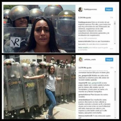 C’est sur cette base que la droite a appelé à manifester le mardi. Ils étaient peu, très peu. Disons 3 mille, avec pour objectif de renverser un gouvernement, une dictature. Parce que c’est ainsi qu’ils parlent. Et pour qui vient du Sud de l’Amérique avec les morts enterrés dans l’estomac, il faut se contenir en écoutant les fils de la bourgeoisie de Caracas crier « dictature », eux, les propriétaires des choses depuis si longtemps, eux qui ont gagné à chacune de nos morts. La matrice de communication internationale est claire : coup d’État, « régime », dictature, censure, prisonniers politiques, violations des droits de l’homme, crise humanitaire, etc… Dans les rues le jeu est différent : groupes de choc pour chercher l’affrontement, générer de la fumée, des pierres, des courses-poursuites. Il faut des images pour l’OEA, pour le monde, pour justifier l’intervention (2). Si les masses n’y vont pas, il faut des cellules entraînées. Ils n’étaient pas plus de 300 dans les zones de choc. Ces images se mêlent à celle de la speakerine commerciale, la blonde Lilian Tintori devenue épouse de prisonnier politique/figure angélique internationale, plus quelques personnes évanouies, plus un jet d’autopompe, et voilà, tout y est… « Maduro sombre dans la dictature » écrira tel ou tel site « alternatif » en Argentine, en France : la boucle sera bouclée sur la planète « George Orwell ».