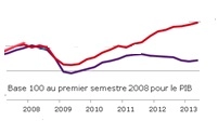 La réponse à la crise de 2008 (voir courbe ci-contre, source Natixis) a permis à l’économie américaine de répartir (courbe en rouge) aux