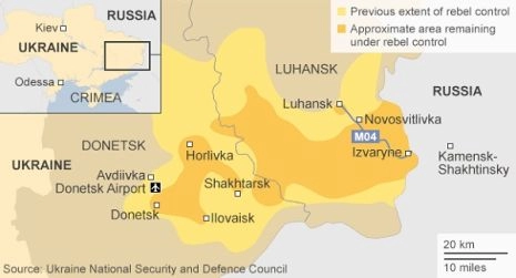 Pour les Novorusses l’équation est simple : plus la ligne de contact (la ligne de front si vous préférez) avec l’ennemi est courte, mieux c’est. Plus elle est longue, pire c’est. Rappelez-vous la scène de Matrix où Neo se bat contre une horde d’Agents Smith : même si Néo est encerclé par des centaines, voire des milliers d’Agents Smith, il ne se bat qu’à 5 contre un à la fois parce que seulement 5 agents peuvent se caser dans son périmètre immédiat. La vraie guerre n’est pas si simple, bien sûr, mais l’idée de base est la même et c’est une des raisons pour lesquelles Strelkov a renoncé à Slaviansk.
