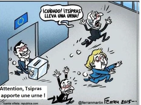 Soit nous reconnaissons que, pour la première fois, notre pays lutte pour casser le cercle vicieux des politiques de la terreur pour le bien des peuples de toute l’Europe, soit nous entérinons par notre vote notre soumission à ceux qui ont transformé notre vie en cauchemar depuis des années.
