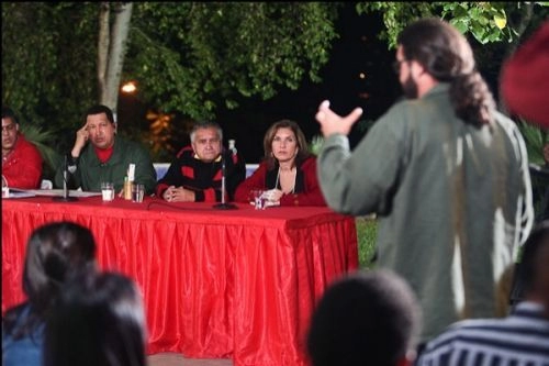 Hier soir le chef de l’État participait à une réunion avec un groupe de militants du droit au logement (photo ci-dessous). Non seulement ceux-ci ont critiqué - en direct, à la télévision - les politiques du gouvernement et son inaction sur les thèmes des loyers et du logement, mais ils ont aussi proposé des lois, des règlements et des projets reçus les bras ouverts par Chavez lui-même. La semaine dernière le Président vénézuélien a usé de son droit de veto sur la loi de l’éducation supérieure votée par l’assemblée majoritairement pro-Chavez de l’an dernier, et il a appelé à un débat plus "large et ouvert" sur ce thème, qui prenne en compte les critiques de ceux qui avaient manifesté leur opposition à la loi. Est-ce là l’attitude d’un dictateur brutal ?