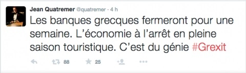 À tout seigneur tout honneur, difficile de ne pas débuter cette « revue de tweets » par ce grand connaisseur de la Grèce, où il est allé plusieurs fois en vacances, qu’est Jean Quatremer :