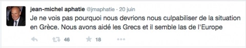 Il faut dire que Jean-Michel Aphatie avait mis la main à la poche pour aider les Grecs, comme il le faisait remarquer le 20 juin, alors que les négociations étaient dans l’impasse :