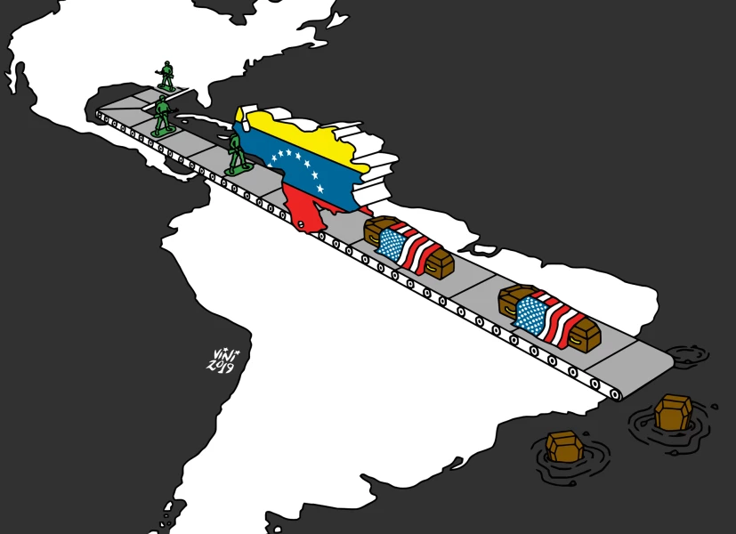La véritable raison est expliquée ouvertement par les agresseurs eux-mêmes. Selon les propres termes de Trump : "Quand je suis parti, le Venezuela était prêt à s’effondrer. Nous l’aurions repris. Nous aurions obtenu tout ce pétrole. C’était juste à côté’. Plus récemment, peut-être fatigué du scénario "narco-terrorisme", Trump a concédé qu’il voulait "le pétrole et les droits fonciers".