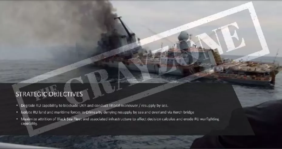 The Grayzone a obtenu une présentation datant d’avril 2022, rédigée à l’intention d’officiers supérieurs des services de renseignement britanniques, qui décrit un plan élaboré visant à faire sauter le pont de Kerch en Crimée avec la participation de soldats ukrainiens spécialement formés. Près de six mois après la diffusion du plan, le pont de Kerch a été attaqué lors d’un attentat suicide le 8 octobre, apparemment supervisé par les services de renseignement ukrainiens du SBU.