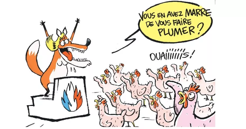 Que faire, alors, nous, dans cette histoire ? C’est du judo : Marine Le Pen se « notabilise », pour se rapprocher du pouvoir ? C’est un risque, évident. Mais c’est aussi une chance pour nous : la voilà qui appartient à l’ « establishment » que dénonçait son père. La voilà toute fière, on le sent, d’être reconnue parmi les gens sérieux, d’avoir son rond de serviette chez les bourgeois. Parviendront-ils, elle et ses collègues, en même temps, à incarner une colère populaire contre ce même « establishment » ? A nous de montrer, re-montrer, démontrer, que le Rassemblement national n’est pas « le vote anti-système », mais la roue de secours du système. Que les intérêts qu’ils défendent, au fond, sont ceux de « la France d’en haut », de l’oligarchie, de la Caste, qu’on appelle ça comme on voudra, et qu’ils nouent des alliances avec eux. A nous de nous bagarrer, partout, pour s’imposer d’évidence comme le vrai recours contre Macron et son monde. Pour ramener les fâchés, les résignés, les découragés, les énervés, les éloignés, pour en faire un bloc majoritaire. A nous de trouver le chemin des cœurs, et vite.