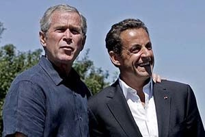 Pourtant Sarkozy réitère apparement la dénonciation de l’invasion de l’Irak et réclame le retrait des troupes étasuniennes. Mais c’est pour mieux inviter à porter le fer et le feu en Iran qui est pour lui la base terroriste, risquant de s’équiper du nucléaire de surcroît. Il n’y a pas réellement de différence là non plus avec la position avec la maison Blanche. Le voeu du retrait des troupes US et le rappel de l’hostilité de la France à cette expédition n’implique aucune action, pas le moindre calendrier. Par contre le discours est un appui total à la manière dont la Maison Blanche accuse l’Iran de terrorisme.