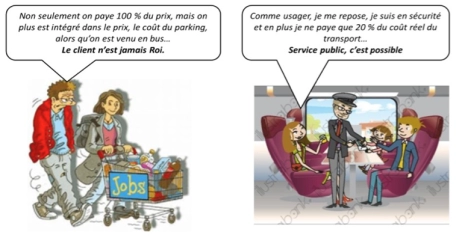 C’est pourquoi, à prestation égale, un client paiera toujours plus cher, qu’un usager. Si le « prix client » est moins cher que le « prix usager », c’est que les prestations offertes, sont inférieures (lignes supprimées) car le service public a toujours comme contrainte dans ses missions, de garantir une égalité de traitement des usagers.