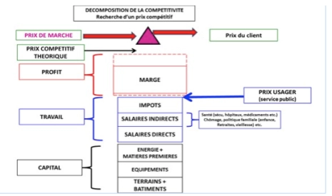 Prix de service public et prix de marché ? Si l’on décompose les prix à partir des coûts réels, et qu’on le fait de manière scientifique, on ne peut que déboucher sur ce graphique. Toute entreprise quelle qu’elle soit est obligé d’investir en Capital et travail (11).