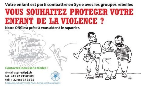 Dans le cadre de nos projets humanitaires tournés vers ce pays déchiré par une guerre fratricide, nous avons décidé de publier une annonce dans le quotidien français Le Figaro, invitant les parents des jeunes qui partent se battre en Syrie à prendre contact avec notre ONG pour les aider à retrouver leur enfant.