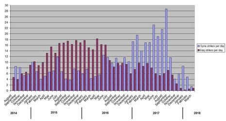 Voilà un tableau des frappes de la coalition dirigée par les États-Unis :