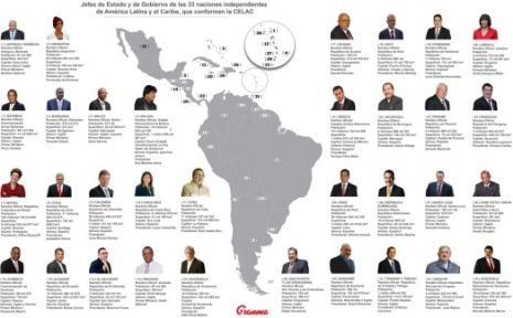 La CELAC, qui rassemble 600 millions d’habitants, a commencé ses travaux en 2011 sous l’impulsion du Venezuela bolivarien ; elle est l’aboutissement des efforts des présidents Lula et Chavez pour accélérer l’unité politique et sociale des latino-américains, jusque là freinée par une OEA basée à Washington et instrumentalisée par les États-Unis. (1)