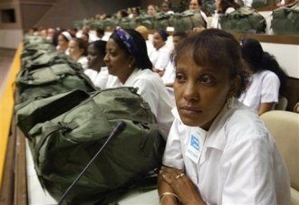 Un ami (merci Olivier) m’envoie ce mail : « Si je ne me trompe pas, la photo qui illustre cet article vient de Cuba, ce sont des médecins en attente pour partir aux USA lors du cyclone Katrina. »