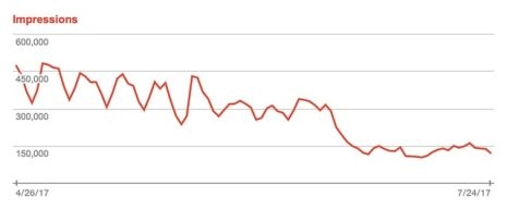 Selon le service d’outils pour les webmestres de Google, le nombre de recherches qui ont permis aux usagers de voir le contenu du World Socialist Web Site (c’est-à-dire un article WSWS apparu dans une recherche Google) est passé de 467 890 par jour à 138 275 au cours des trois derniers mois. La position moyenne des articles dans les recherches, entre-temps, est passée de 15,9 à 37,2 au cours de la même période.