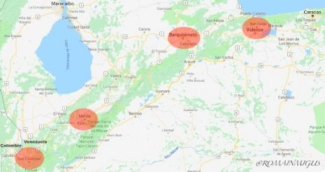 Les territoires mentionnés permettent de bloquer l’approvisionnement des grandes villes en contrôlant les voies de communications. Cabudare est l’entrée de Barquisimeto depuis les Etats agricoles situés au sud. De nombreux produits destinés aux métropoles de la côte transitent par cette importante ville vénézuélienne. San Diego est situé à la périphérie de Valencia, capitale industrielle du pays, sur la route qui mène à Caracas. Cette ville est aussi établie sur la route qui conduit à Puerto Cabello, le principal port du Venezuela. Ajoutons que Barquisimeto et Valencia sont des points de passage obligés sur les axes routiers qui relient Maracaibo, et la région pétrolière du Zulia, à Caracas et au reste du pays.