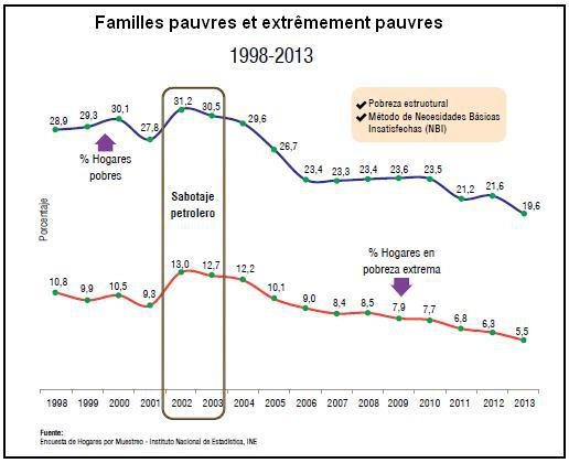 On comprend pourquoi, malgré la guerre économique menée en 2013 par l’opposition, les politiques mises en oeuvre par le gouvernement bolivarien continuent de faire baisser la pauvreté. Celle-ci est passée de 21,6% en 2012 à 19,6 % en 2013. Sur la même période, la pauvreté extrême est passée de 6,3 à 5,5%. Ces chiffres sont confirmés par la CEPAL (Commission Économique des Nations Unies pour l’Amérique Latine). Le président Maduro a rappelé que l’objectif de la révolution bolivarienne est “la pauvreté zéro en 2019”.
