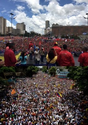 En outre, la presse mainstream insiste lourdement sur la « polarisation politique », certes incontestable, au Venezuela pour mieux cacher une polarisation sociale à la base du conflit politique. Comme le souligne Christophe Ventura, chercheur à l’IRIS et spécialiste de l’Amérique Latine, dans une interview à L’Obs, « l’opposition peut se targuer d’avoir le soutien d’une partie de la population mais il ne s’agit sûrement pas du peuple « populaire ». Principalement, ce sont des classes moyennes, aisées, jusqu’à l’oligarchie locale tandis que le chavisme s’appuie sur des classes plus populaires, voire pauvres. En fait, le conflit politique qui se joue aujourd’hui cache une sorte de lutte des classes. L’opposition a donc un appui populaire en termes de population mais pas dans les classes populaires. » Les manifestations de l’opposition se concentrent, en effet, dans les localités cossues de l’est de la capitale (Chacao, Altamira) gouvernées par l’opposition tandis que les barrios populaires de l’ouest de la capitale restent calmes. La base sociale de l’opposition est un détail qui semble déranger la presse mainstream dans la construction du récit médiatique d’un peuple tout entier, d’un côté, dressé contre le « régime » de Nicolás Maduro et sa « bolibourgeoisie » qui le martyrise en retour, de l’autre côté. Ainsi, les manifestations pro-chavistes qui se déroulent d’ordinaire dans le centre de Caracas sont souvent invisibilisées dans les médias français. Le 1er septembre 2016, l’opposition avait appelé à une manifestation baptisée « la prise de Caracas » et les chavistes avaient organisé, le même jour, une contre-manifestation baptisée « marée rouge pour la paix ». Une journée de double-mobilisation donc. Le Monde titrera sur « la démonstration de force des opposants au président Maduro » en ne mentionnant qu’en toute fin d’article que les chavistes avaient organisé une manifestation le même jour qui « a réuni quelques milliers de personnes ». Ces quelques milliers de chavistes, n’auront pas le droit, eux, à une photo et une vidéo de leur manifestation… D’autant plus qu’ils étaient sans doute plus nombreux que ce que veut bien en dire le quotidien. Dans un article relatant une manifestation d’opposition de vénézuéliens installés à Madrid qui a eu lieu quelques jours plus tard, Le Monde mentionne la « prise de Caracas » du 1er septembre mais réussit le tour de force de ne pas mentionner une seule fois la « marée rouge » chaviste. En réalité, les deux camps politiques avaient réuni beaucoup de monde, chacun de leur côté, illustrant ainsi la polarisation politique et sociale du Venezuela.