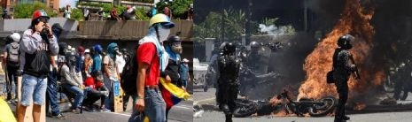 Les photos des manifestations de l’opposition et des heurts avec les forces de l’ordre sont largement diffusées et les événements sont traités comme un tout indistinct alors que ces mobilisations d’opposition se déroulent en deux temps, comme l’explique Maurice Lemoine et que les manifestants pacifiques de la matinée ne sont pas les mêmes « manifestants » qui, encagoulés, casqués et armés, s’en prennent aux forces de l’ordre dans l’après-midi. Cet amalgame rappelle le traitement médiatique des mobilisations sociales contre la Loi Travail sauf que, dans le cas français, les médias de masse avaient pris fait et cause pour le gouvernement et les forces de l’ordre et avaient stigmatisé le mouvement social, en amalgamant manifestants et casseurs qui passeraient, soit dit en passant, pour des enfants de chœur à côté des groupes de choc de l’opposition vénézuélienne. Ce parti pris médiatique majoritaire s’explique sans doute parce qu’au Venezuela, le gouvernement est antilibéral et l’opposition est néolibérale, conservatrice voire réactionnaire tandis qu’en France, c’est précisément l’inverse. Sous couvert de dénoncer la violence, la presse de la classe dominante défend, en réalité, à Paris comme à Caracas, les intérêts de la classe dominante.