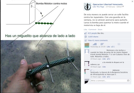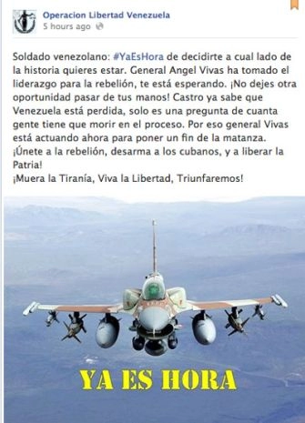 La première de ces connexions est un groupe d’activistes appelé “Opération Libertad”. Sur la page internet de cette organisation elle déclare son ambition d’être une Organisation Non gouvernementale de caractère continental et dans son chapitre vénézuélien, elle ne se caractérise pas particulièrement par ses appel à une action pacifique, comme le prouve son profil Facebook.