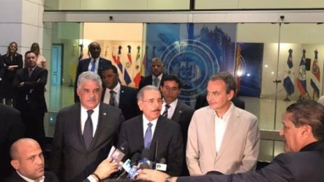 Bien que l’on ait déterminé les pays accompagnateurs du dialogue en suivant les propositions de la MUD (Mexique, Chili et Paraguay) en plus de la Bolivie et du Nicaragua désignés préalablement par le gouvernement et que la délégation chaviste (formée de Jorge Rodriguez, Delcy Rodriguez, Elias Jaua et Roy Chaderton, voir photo) se trouvait déjà en République Dominicaine, alors que l’ex-président du gouvernement espagnol José Luis Rodriguez Zapatero et le gouvernement dominicain (photo) avaient préparé la réunion, la MUD a annoncé qu’elle refusait de participer au dialogue.