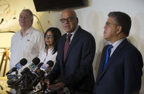 Le maire de Caracas Jorge Rodriguez, qui se trouve à la tête de la délégation bolivarienne, a signalé au sujet de ce renoncement in extremis de l’opposition à participer aux dialogues de Saint-Domingue : « Il est dû aux dissensions internes, nous parlons de 17 partis, qui font la vie de l’opposition vénézuélienne, ceci occasionne certaines difficultés pour le déroulement du dialogue ». Rodriguez a demandé à l’opposition de ne pas permettre que les problèmes internes à la coalition des partis de la Mesa de Unidad Democratica (MUD) fassent obstacle au nécessaire dialogue qui garantira la paix au Venezuela : « Nous autres, eu égard à ce qui doit être la position de ceux qui sont responsables, nous sommes ici, nous avons dit que l’on nous verrait le 27 septembre en République Dominicaine et nous y sommes, nous tenons notre promesse de façon responsable ». Le maire chaviste a rappelé que depuis le 12 septembre, ils ont tenu de multiples réunions avec l’opposition vénézuélienne et a révélé certains des points de l’agenda sur lesquels ils se sont mis d’accord. « S’il est bien vrai que nous nous sommes mis d’accord dans la plus grande discrétion, il est nécessaire d’éclairer le peuple, surtout le peuple d’opposition que l’on est en train de le tromper, sur l’agenda sur lequel nous nous sommes mis d’accord (…) Cet agenda incluait la discussion du chronogramme électoral du Venezuela pour les prochains mois et pour l’année 2018. Nous avons également fixé les probables dates des élections des maires pour la prochaine année 2018 ; quant à l’élection du président, n’en n’ayez pas le moindre doute, elle se tiendra comme prévu en 2018 ».