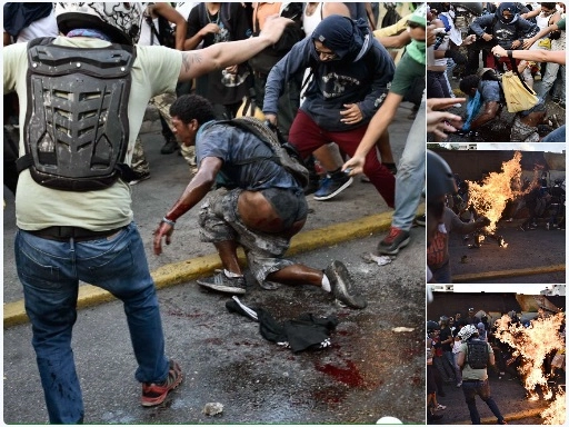 Imaginons la tête des « dircom » du président Macron si celui-ci leur proposait de se faire prendre en photo à l’Elysée avec une brochette de suprématistes blancs de Charlottesville. C’est pourtant ce qu’il a fait en adoubant les éléments les plus violents de l’extrême droite vénézuélienne, dont les troupes ont lynché des êtres humains au motif qu’ils étaient noirs, pauvres et chavistes. La photo de la réception du Ku Klux Klan tropical sous les ors élyséens aurait été impossible si les médias n’avaient préalablement bombardé l’opinion française pour la convaincre que la résistance du gouvernement vénézuélien à l’insurrection armée de la droite était la « répression d’un peuple luttant pour la démocratie » et que ces croisés du seizième siècle colonial étaient des « combattants de la liberté ». Cet évènement insolite a lieu en 2017. Il en dit long sur la relation des médias de France avec le monde extérieur et sur ce qu’est devenue la politique étrangère de ce pays.