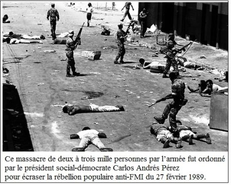 Ce massacre de deux à trois mille personnes par l’armée fut ordonné par le président social-démocrate Carlos Andrés Pérez pour écraser la rébellion populaire anti-FMI du 27 février 1989.