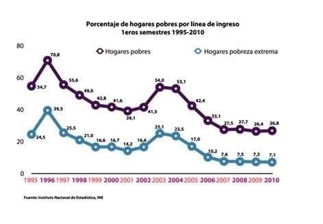 En 1998, année où le président Chávez remporta l’élection présidentielle, la pauvreté touchait 49% de la population. Le nouveau modèle de politique sociale du gouvernement révolutionnaire a commencé à la faire reculer, jusqu’à 39,1% en 2001. Le résultat de l’intervention grotesque de l’opposition à travers le coup d’Etat militaire et le lock-out du secteur pétrolier en 2002, fut la remontée de la pauvreté à 54% en 2003. Les années suivantes, avec la reprise progressive des politiques d’inclusion sociale, les résultats redevinrent positifs, et tous les chercheurs internationaux armés méthodologiquement les ont validés.