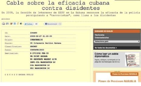 La base de données de Wikileaks contient 2080 messages que l’Agence d’Intérêts des USA, située à La Havane, a envoyés au Département d’État nord-américain, et pour l’instant aucun n’a été publié. Wikileaks les diffuse logiquement au compte-goutte, car les agressions du gouvernement nord-américain ne sont pas uniquement verbales. Ce site web subit un harcèlement cybernétique légalisé, ses serveurs ont reçu au moins deux assauts de connexions concentrées dont l’un d’eux était supérieur à 10Gb à la seconde, ce qui équivaut à une attaque simultanée de plusieurs millions d’ordinateurs.