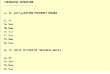 Partie du formulaire envoyé au D.E. par le chef de la SINA et divulgué par Wikileaks.