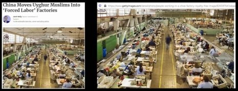 Les médias mainstream US ne font pas mieux. Ainsi Forbes voulait écrire un article sur le travail forcé dans le Xinjiang. Comme ils ne pouvaient trouver une vraie photo, ils se tournèrent sur Getty image et récupérèrent une vieille image vieille de 10 ans d’une usine de chaussures au Chili ! Aucun sens de l’éthique du journalisme !