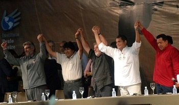 Le MS21 a inscrit dans sa Charte le paragraphe suivant : « .....il y a dans le monde des peuples qui ne se résignent pas au vide politique et refusent résolument les dégâts sociaux et environnementaux du capitalisme et de sa forme actuelle le néo-libéralisme . Le MS21 a donc tourné ses regards vers les pays d'Amérique du sud – tels le Venezuela, l'Equateur, la Bolivie – qui ont élaboré de nouvelles constitutions et mis en place des politiques sociales au service de leur peuple. » (…)