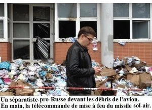 Trop tôt pour dire qui a abattu le Boeing 777 de la Malaysia Airlines et pourquoi. Cependant, l’équipe des médiatologues du GS peut d’ores et déjà soutenir qu’ un conflit oppose les Ukrainiens aux « séparatistes pro-Russes » dits aussi « les insurgés », mais jamais « Ukrainiens » ou « Ukrainiens de l’Est ». En quelque sorte, les opposants aux néo-nazis de Kiev sont devenus apatrides par la grâce de nos journalistes enfumeurs.