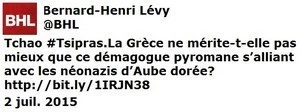 (1) D’extrême gauche ? Il est vrai qu’Aube dorée n’en fait pas partie, contrairement à ce que tweete Arnaud Leparmentier (Le Monde, France Inter) retweetant BHL (tous médias).