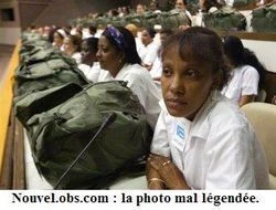 Le 23 décembre 2005, le Nouvel.Obs.com publie un article sur la grève des 6000 médecins étrangers qui exercent en France avec une photo où l’on voit des médecins au teint mat, pourvus d’un paquetage. Un internaute perspicace remarque que la photo (d’Associated Press) montre en vérité des médecins cubains du contingent Henry Reeve (qui répond à des situations d’urgence dans le monde) réunis au palais des Congrès de La Havane dans l’attente d’une mission en Louisiane après le cyclone Katrina (aide refusée par Bush).