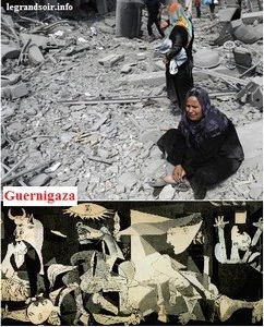 - Voilà ce qu’on va faire : je te prends une partie de tes terres, et au-dessus des autres où je t’ai enfermé en bord de mer, je trace des couloirs aériens d’où je bombarde tes maisons, centrales électriques, hôpitaux, mosquées, écoles, écoles de l’ONU. Au sol, je patrouille avec mes chars d’assaut et je pulvérise tout ce qui bouge. Mais, sous terre, on vous fiche la paix. Dans vos linceuls. Avec vos enfants.
