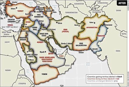 - indépendance du Baloutchistan au détriment de l’Iran et du Pakistan et occupation du port de GWADAR construit par la Chine et assurant aux provinces occidentales de cette dernière un accès facile à l’Océan Indien