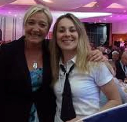 1) En septembre 2012, à La Baule, Marine Le Pen, hilare, prend affectueusement dans ses bras Anne-Sophie Leclère (photo).