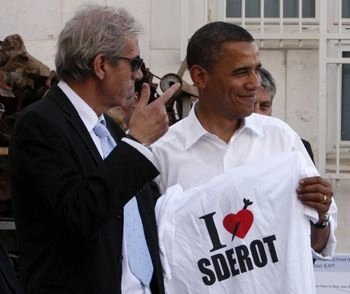 Le candidat Obama - accompagné de la ministre des Affaires étrangères, Tsipi Livni - s’est ensuite rendu dans la ville israélienne de Sdérot, cible régulière des tirs de roquettes Qassam du Hamas.