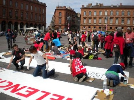 Le meeting devait commencer à 19 H, place du Capitole, par un spectacle des « Grandes Bouches » suivi d’interventions : Nicole Borvo, sénatrice communiste, Christian Piquet (Gauche unitaire) venu du NPA et Myriam Martin, également du NPA dont elle est une dirigeante nationale et la tête de liste habituelle dans la région.